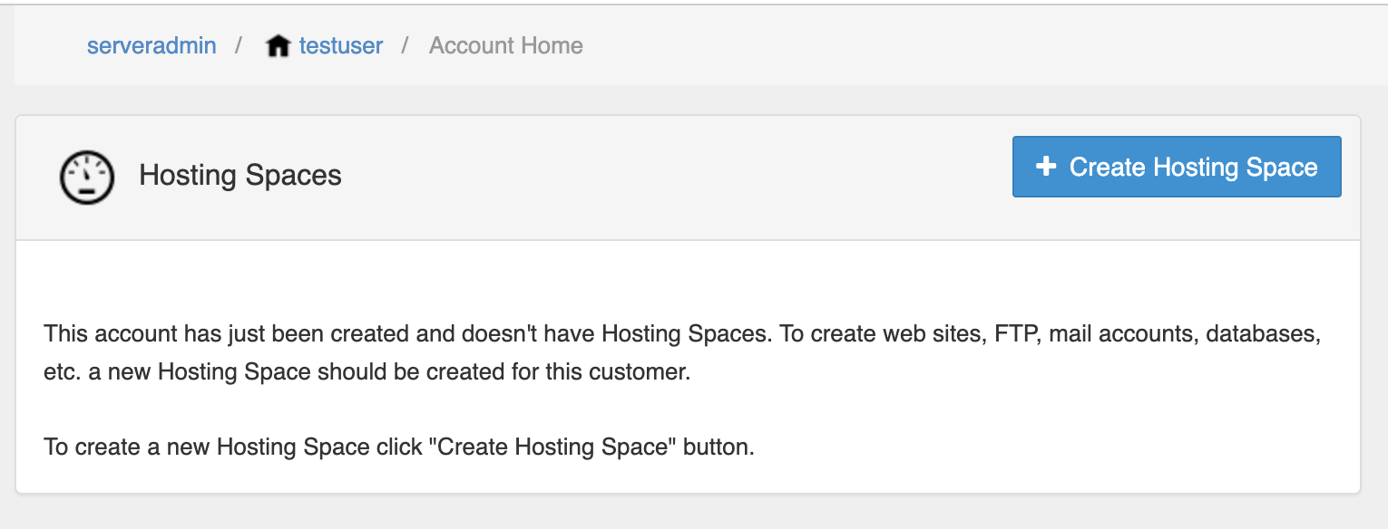 - Once the new user is created, you will be landed on Hosting Spaces page. Click on Create Hosting Space button to create new hosting space.